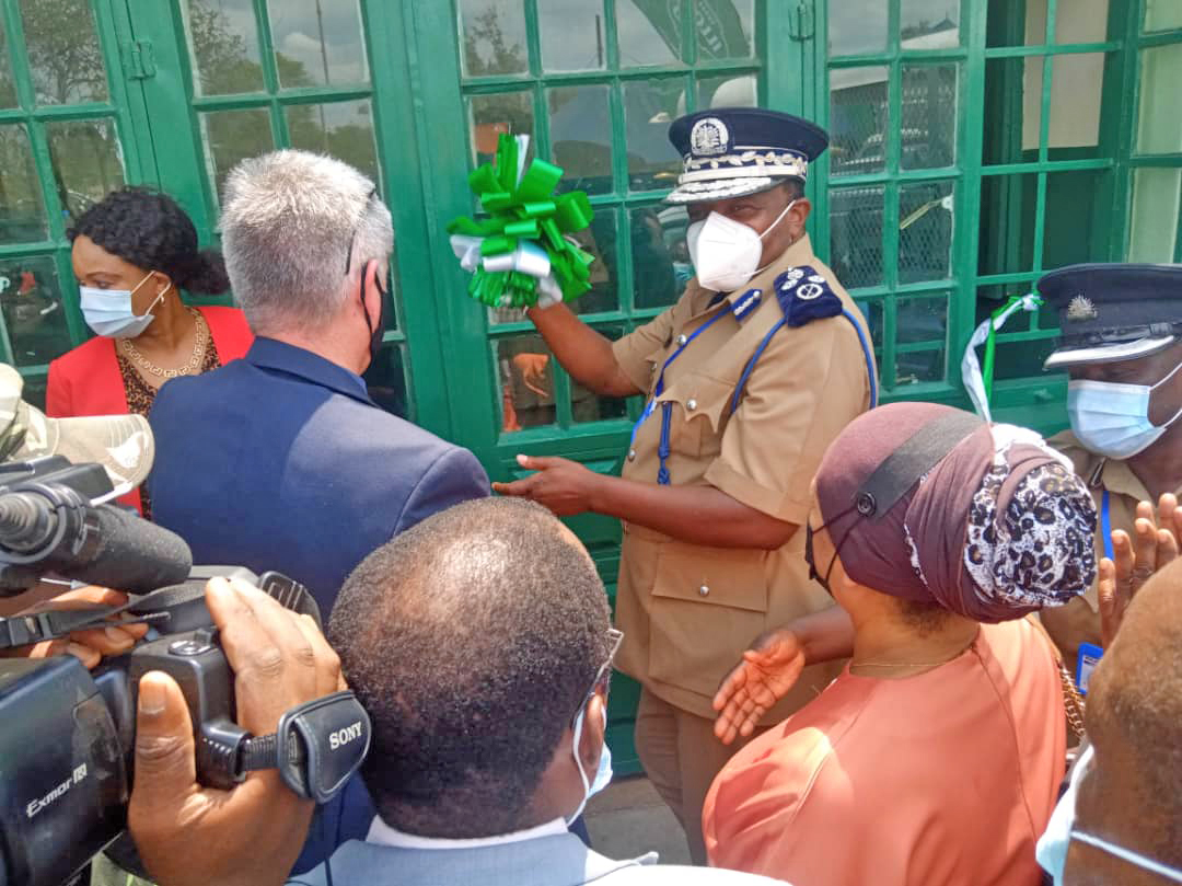 The Inspector General of Police Dr George Kainja received the vehicles and the refurbished office on behalf of the Malawi Police Service.